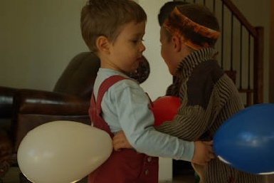 Dar vienas žaidimas su balionais - tai dviems žaidėjams suspaudus pilvais balioną apsisukti aplink save taip, kad balionai neiškristų. Galima suktis kelis kartus(pvz.,4-is:)), bet tai priklauso nuo vaikučių amžiaus. Balionų rankomis liesti negalima.
