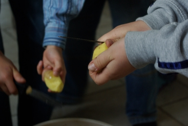 Jeigu neturite priemonių žaidimui, bulvių visuomet rasite namuose:). Kiekvienam (vyresniam) vaikui po peiliuką ir po bulvę. Štai Jums ir žaidimas