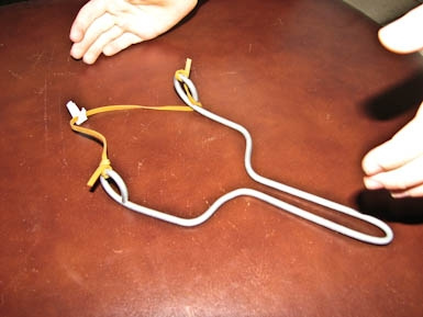 Štai tokią laidynę – „ragatkę“ pasidarė 5-etis sūnelis, netikėtai dėžutėje radęs neploną gumytę. Žinoma, pati idėja vaiko, o realizavo ją tėtukas
