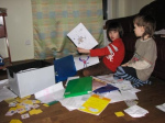 Vieną vakarą ištraukiau vaikams dėžę "senų daiktų" - ten buvo sudėti vyriausiojo sūnaus sąsiuviniai, knygos, piešinukai, užduotys, atliktos nulinėje klasėje. Kaip jam buvo smagu prisiminti pamirštus daikčiukus. Vakaras praėjo puikiai!...