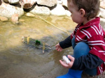 Pasidarę plaustą, vaikai dar vietoj burių įsikišo kareivėlį ir smagiai plukdė baseinėlyje....