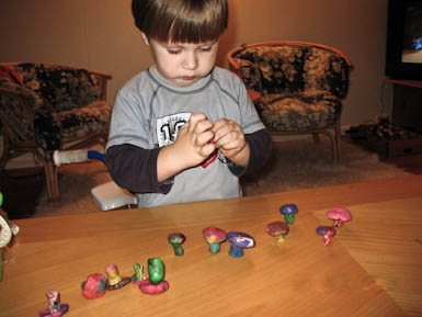 Kaip nesinori kelt kojos iš namų, kai prasideda darganoti rudens orai… Tad žliaugiant šaltam lietui su mažuoju prasimanom žaidimų namuose. Vienas mėgstamiausių jo užsiėmimų − grybavimas. Iš plastilino prilipdom daug grybų, pridėliojam jų kambaryje, na, o tada prasideda visas smagumas