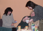 Nors vaikams niekada nesekame pasakos, kad gandras atneša kūdikį, tačiau man ji patinka:). Ir gandrai patinka. Manau, kad gandras – puikiausias Kūdikio sutiktuvių šventės simbolis. Nors nežinau, iš kur gauti gandrų, tačiau Kūdikio sutiktuvių metu visuomet jį turime. Vieną gandrą iš drožlių plokštės išpjovė draugės vyr...