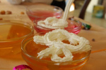 Kiekvienam vaikučiui padariau po želė dubenėlį. Kad būtų skaniau ir gražiau, prieš patiekdama ant viršaus uždėjau grietinėlės. Labai greitai paruošiamas desertas:)...