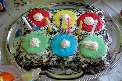 Spalvoti ratai – apvalūs sausainiai, užtepti glajumi, nudažytu maistiniais dažais.
