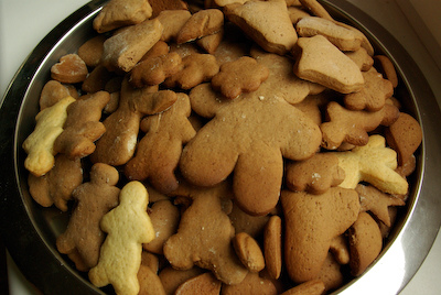 Iš nurodytų produktų suminkyti tešlą, palaikyti per naktį šaldytuve. Iš tešlos kočioti lakštą, jame išpjaustyti įvairių formų meduoliukus ir kepti apie 15-20 min.
